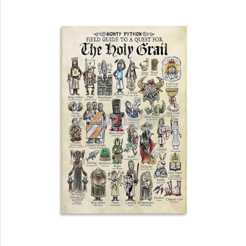 Monty Python Field Guide to A Quest for Poster Vintage Movie Monty Python And The Holy Grail Poster Home Living Room Bedroom Decoration Gift Printing Art Poster Unframe-style 12x18inch(30x45cm)